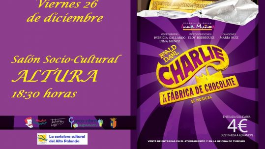 24 diciembre, 2025El próximo viernes 26 de diciembre, a las 18:30 horas, en el Salón Socio-Cultural de Altura se representará la obra Charlie y la fábrica de ...