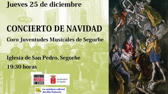 23 diciembre, 2025El próximo jueves 25 de diciembre, a las 19:30 horas, en la Iglesia de San Pedro de Segorbe, el Coro de Juventudes Musicales de Segorbe ofre...