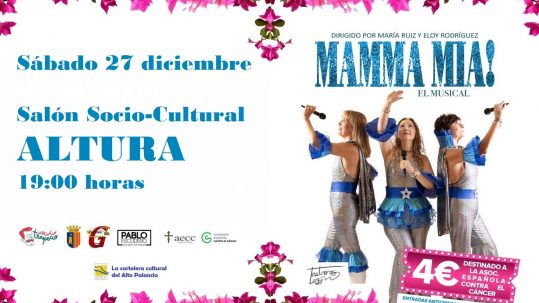 27 diciembre, 2025El próximo sábado 27 de diciembre, a las 19:00 horas, en el Salón Socio-Cultural de Altura se representará el espectáculo “Mamma Mia, el Mus...