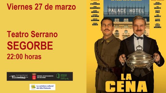 24 marzo, 2026El próximo viernes 27 de marzo, a las 22:00 horas, se proyectará en el Teatro Serrano de Segorbe la película “La cena”, de Manuel Gómez Pere...