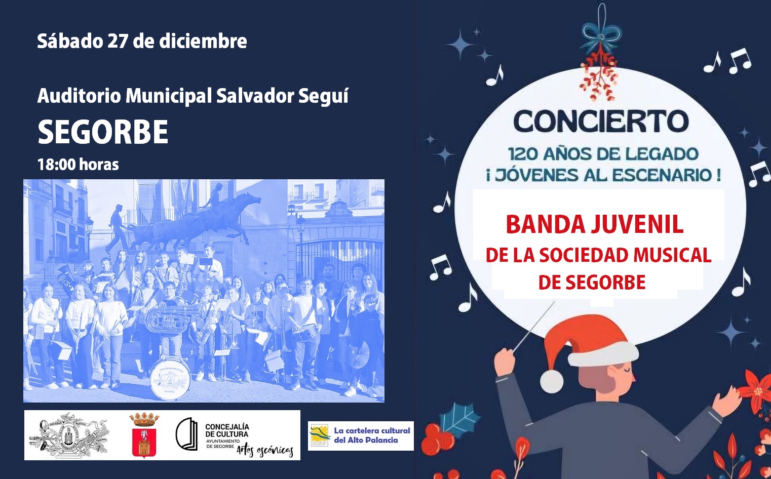 El próximo sábado 27 de diciembre, a las 18:00 horas, en el Auditorio Municipal “Salvador Seguí” de Segorbe actuará la Banda Juvenil de la Sociedad Musical de Segorbe.