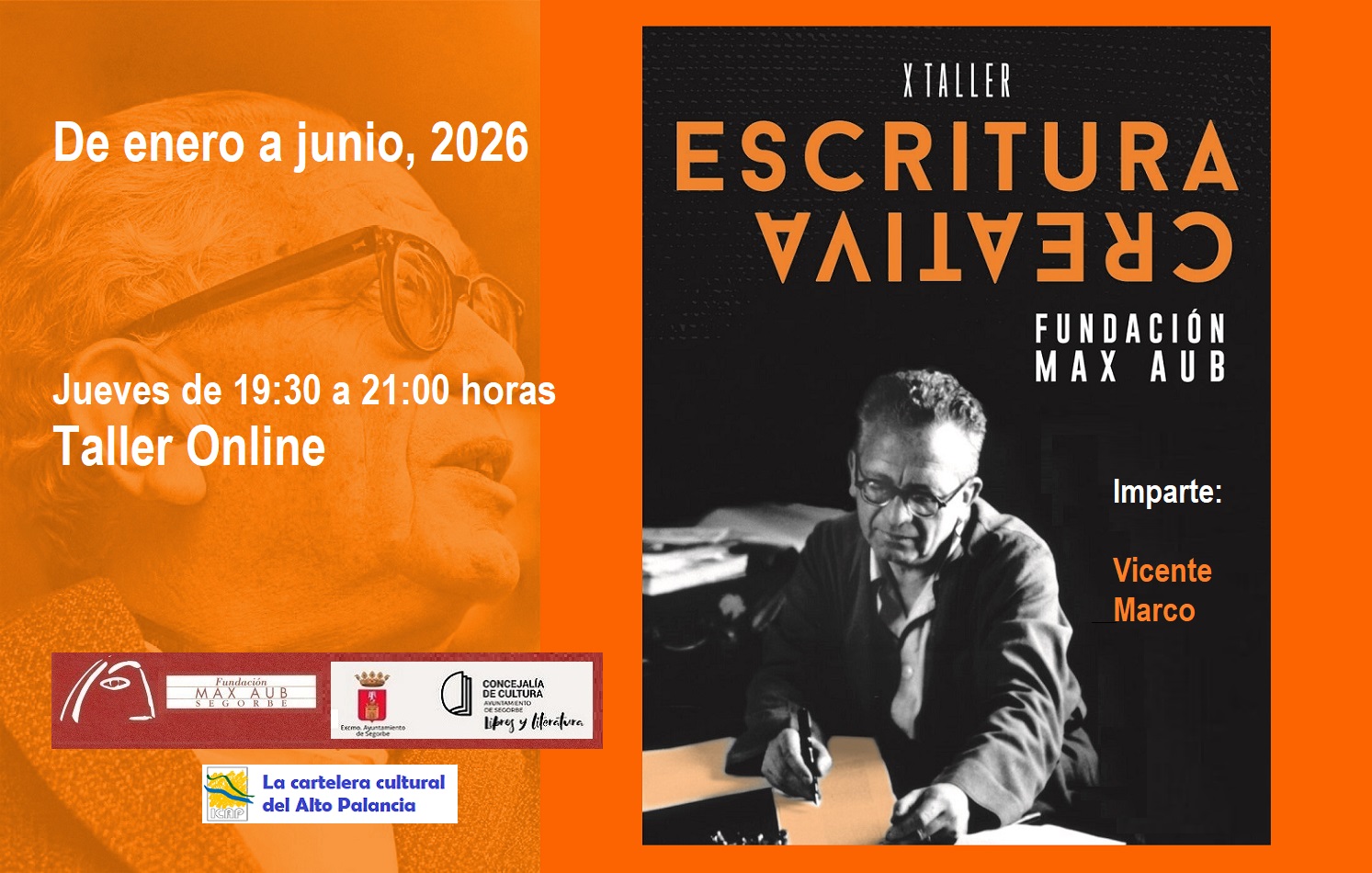 El mes de enero de 2026 comenzará una nueva edición del Taller de Escritura Creativa que la Fundación Max Aub lleva organizando desde hace varios años en colaboración con el Ayuntamiento de Segorbe. Las sesiones del taller se prolongarán hasta el mes de junio y se llevarán a cabo los jueves ON LINE, entre las 19:30 y las 21:00 horas.