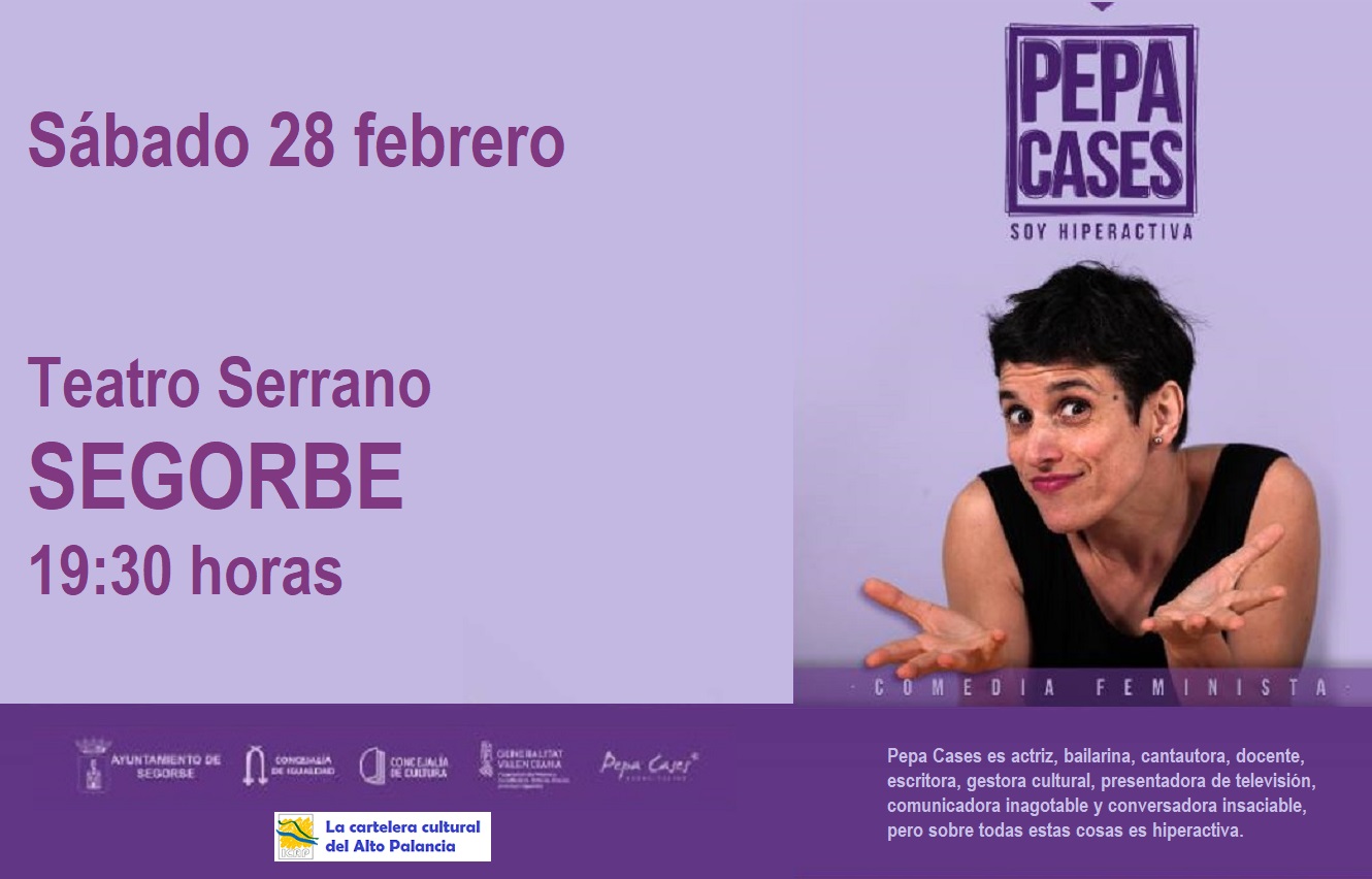 El próximo sábado 28 de febrero, a las 19:30 horas, en el Teatro Serrano de Segorbe actuará la artista multidisciplinar Pepa Cases. La entrada será gratuita hasta completar el aforo.